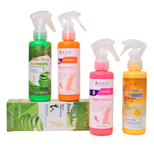 یکی دیگر از محصولات مراقبت از پا ،اسپری های اسکراب و لایه بردار پا است که پوست های ضخیم و سلول های مرده پوست را لایه برداری می کند و پوست پا را نرم و لطیف می کند.