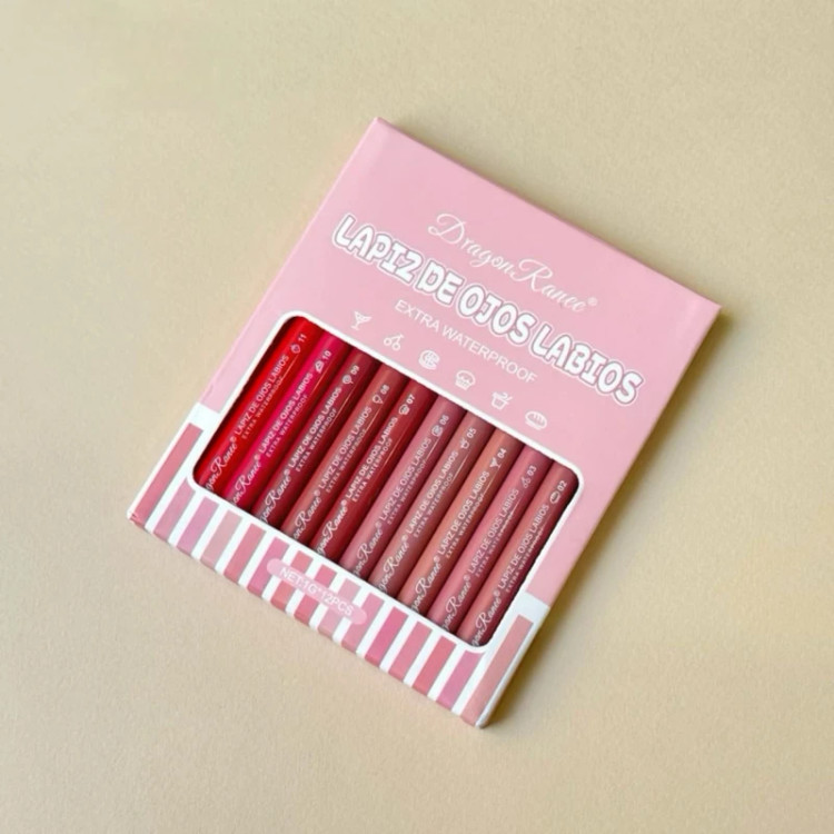 مداد لب دراگون رانی مدل waterproof مجموعه ۱۲ عددی